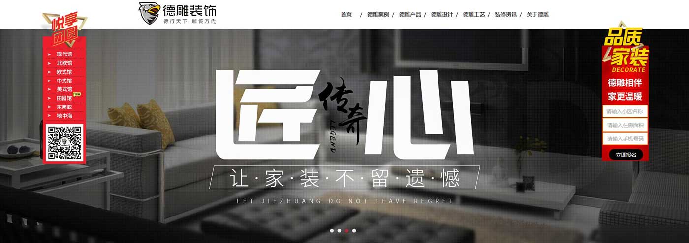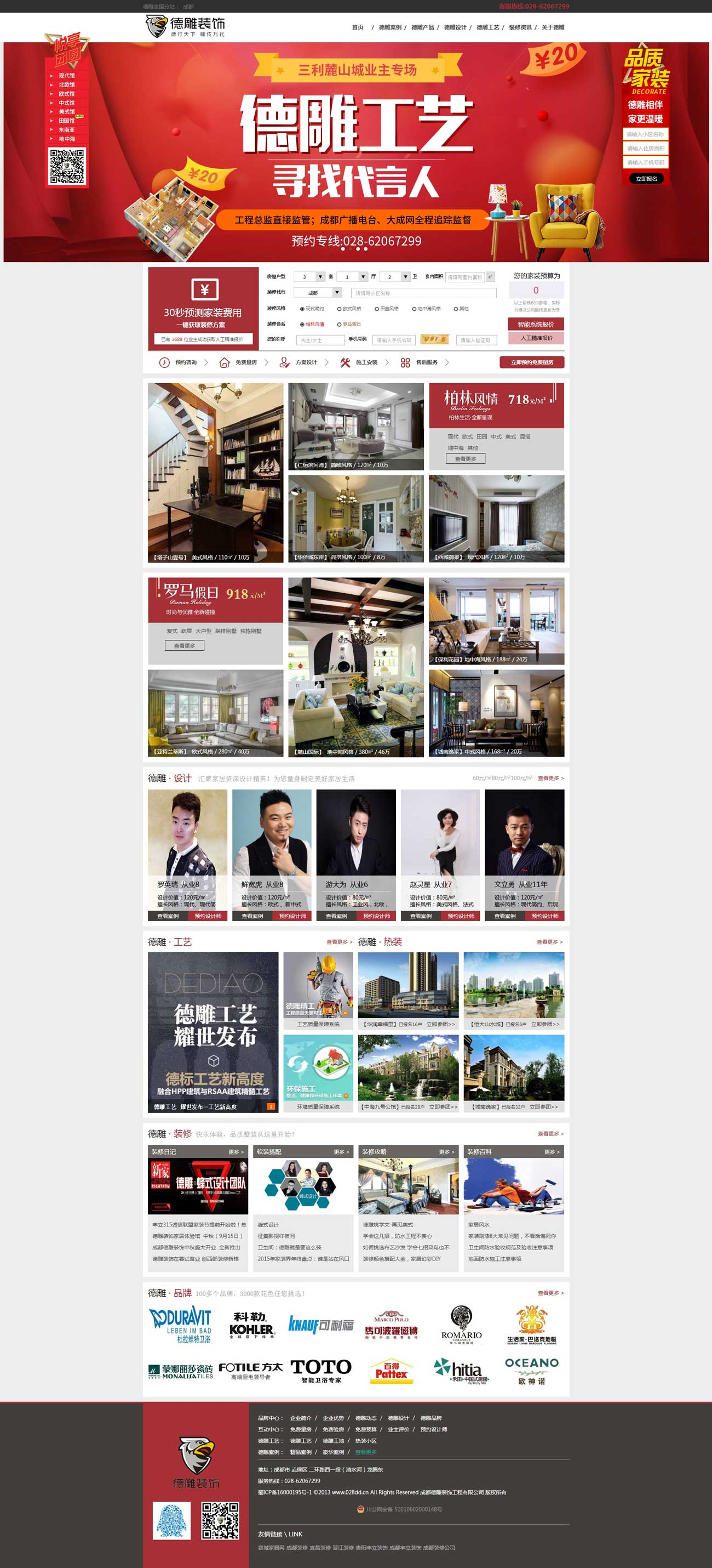 成都德雕裝飾源碼包括二級頁面、三級頁面、專題頁面、裝修計算器頁面、設計師展示頁面、新聞資訊頁面、裝修常識頁面、工裝案例展示頁面、家裝案例展示頁面、裝修設計頁面、企業榮譽頁面、企業簡介頁面、企業動態頁面等頁面。